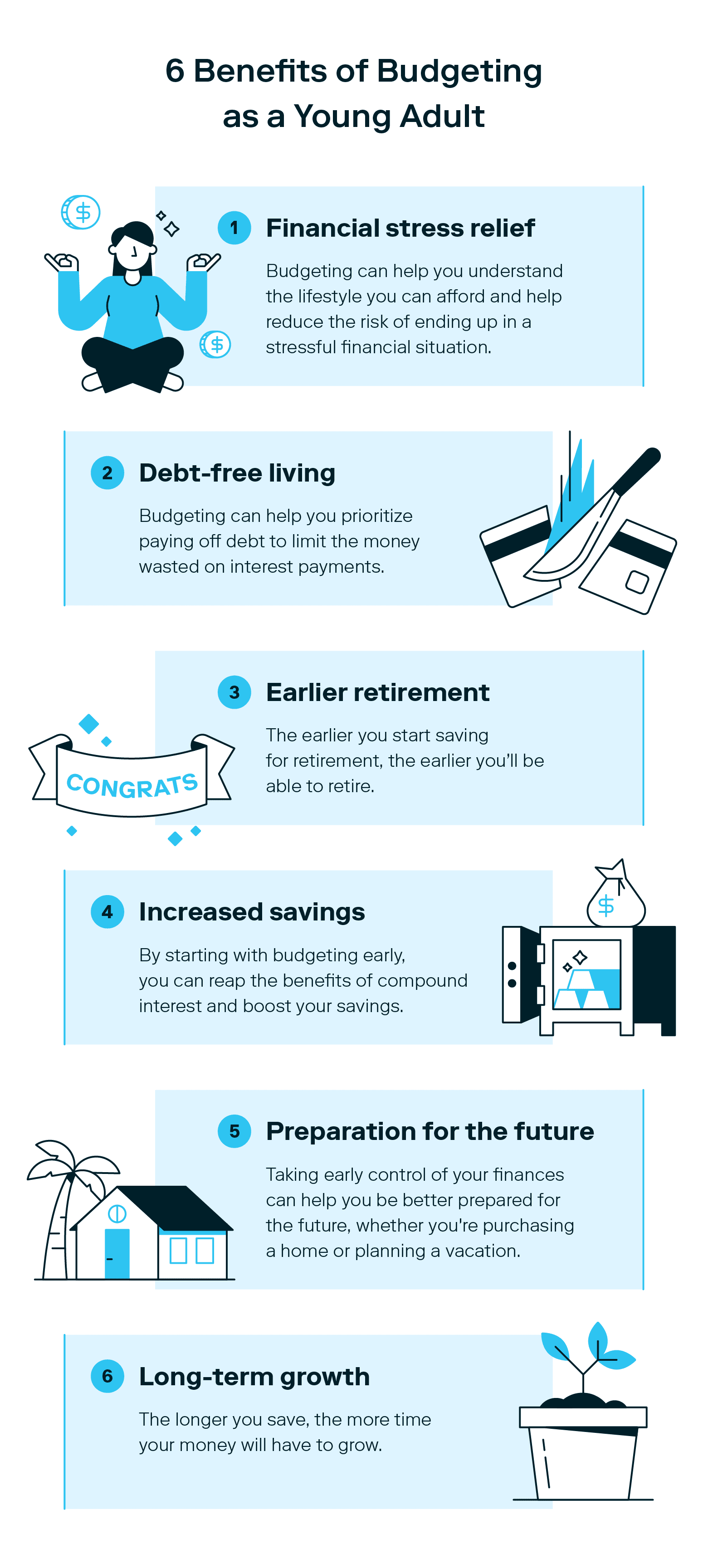 As a young adult, you may feel that budgeting is something that can wait. But by putting off prioritizing your financial health, you’ll be missing out on a wide range of benefits, including: