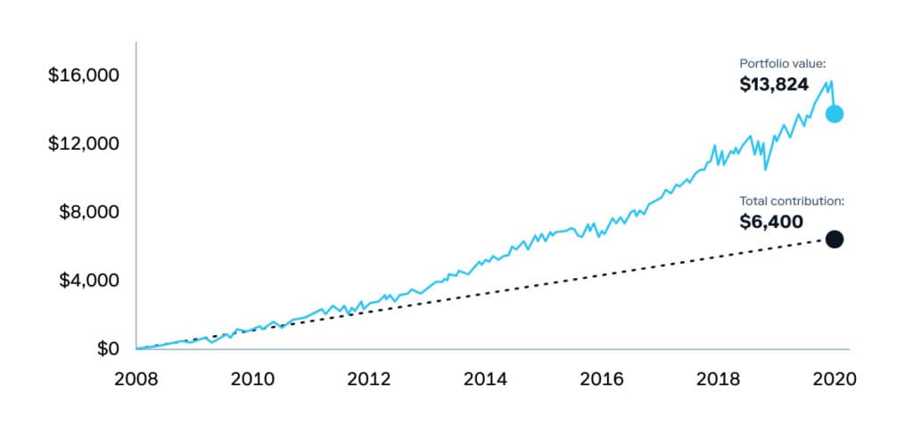 Here’s what your investing account might have looked like if you could have used Set Schedule from 2008 until March 2020: