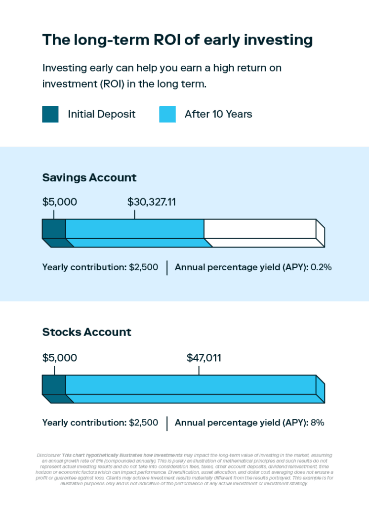 Yes—no amount is too small to begin investing. The sooner you invest, the sooner you can begin earning potential profits from your assets. It’s important to remember that all investments come with risk, however a longer horizon for investing can help smooth out investment performance.
