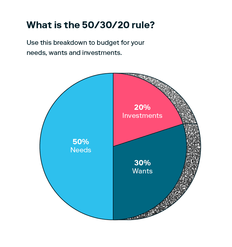 Save 50% of your income for your needs, like rent, food, gas, insurance, etc.