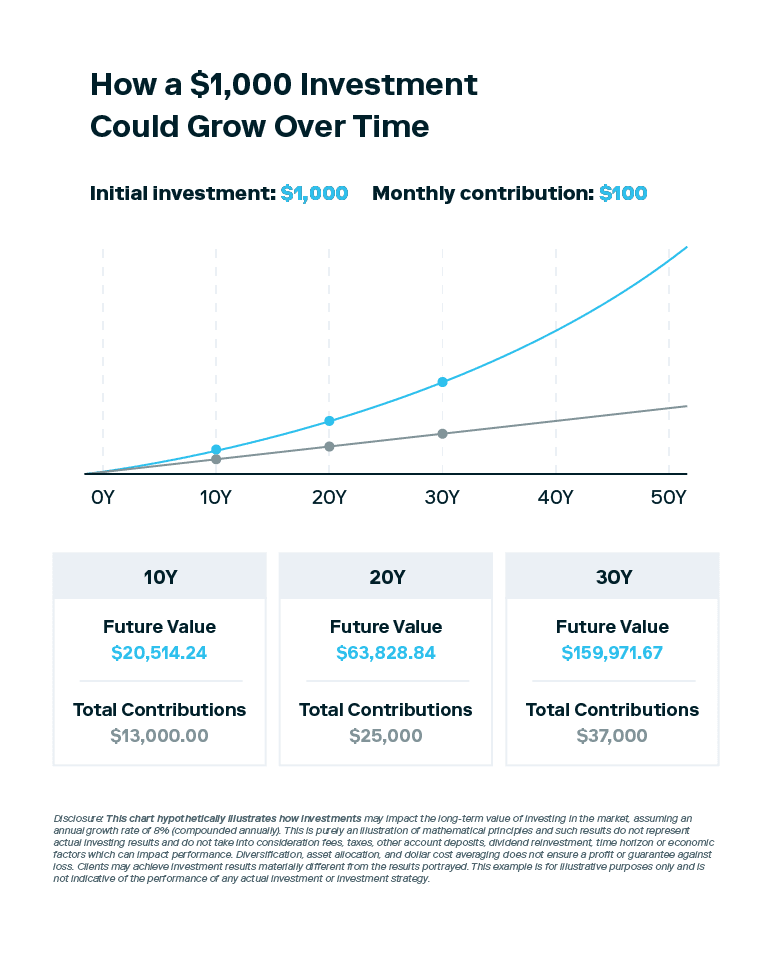 The whole idea of investing is to make your money work for you. Instead of spending your $1,000 or letting it sit idle in your checking account, investing can help grow your money for the future. Investments made today can gain value over time, especially when you follow a long-term strategy. Here are some pointers to ensure your $1,000 continues to grow: