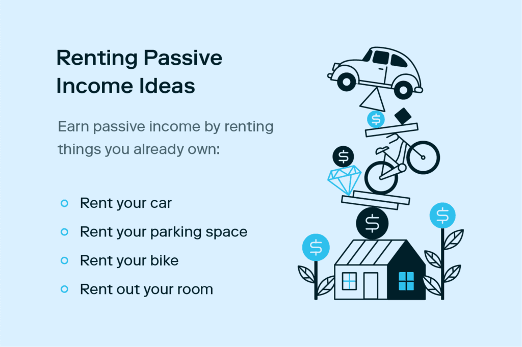 You can rent your car on platforms like Turo, which makes it easy to sign up and get started. If you’re renting out a car you already own, be sure it’s not the one you use for everyday transportation—this passive income idea works best if you have an extra car or two that you don’t typically drive.