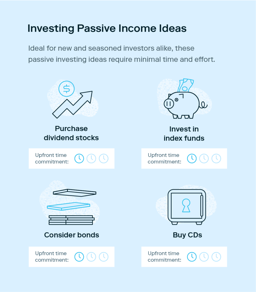 A simple path to passive income investing as a beginner is to invest in certificates of deposit (CDs). They operate similarly to a traditional savings account, but they can earn more in interest over time—no effort on your part.