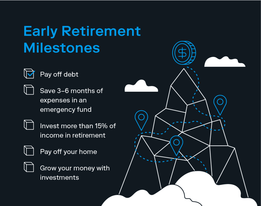 But if your goal is to retire early, you’ll want to find ways to put more dollars toward that goal—especially if you’re utilizing tax-advantaged retirement accounts like 401(k)s or IRAs, since those funds can’t be withdrawn until you’re 59 ½ (unless you want to pay a hefty early withdrawal fee).