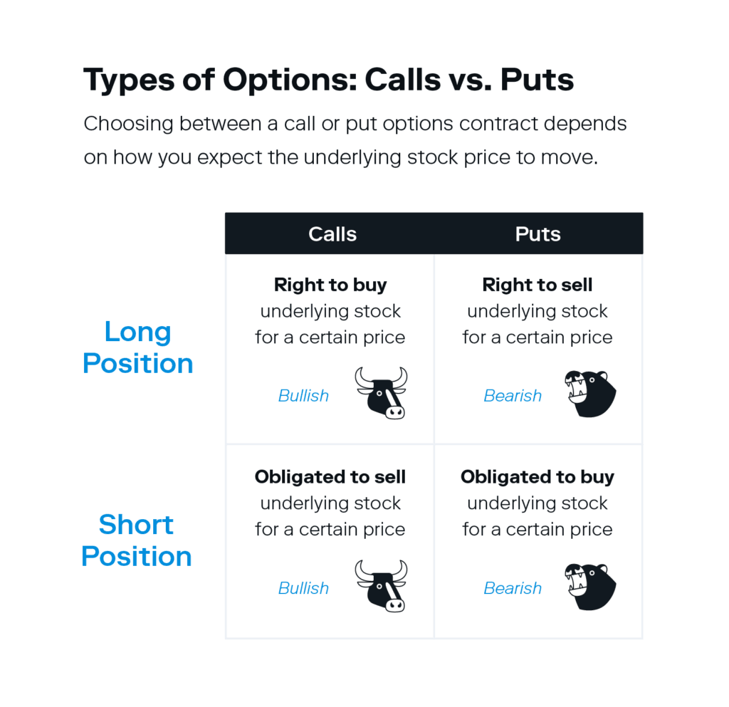 Types of options you want to trade: the two most common types of options contracts are calls or puts, and you’ll need to note which type of contract you want.