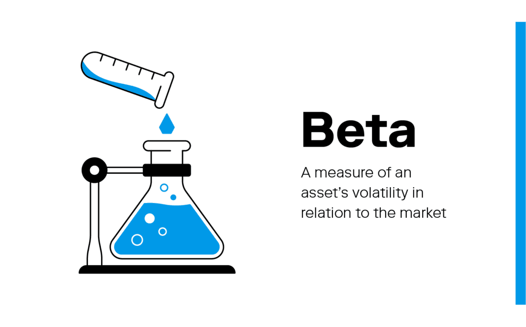 Beta is the measure of an asset’s risk in relation to the market. A stock with a beta of 1.5 means that the stock typically moves 50% more than the market in the same direction. Generally, a higher beta indicates a riskier investment—if the market rises 10%, the stock will rise by 15%, but if the market falls by 10%, the stock will fall by 15%.