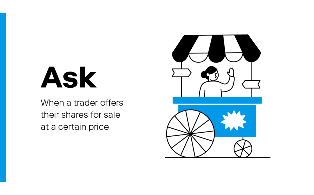 An ask is the selling price that a trader offers for their shares.