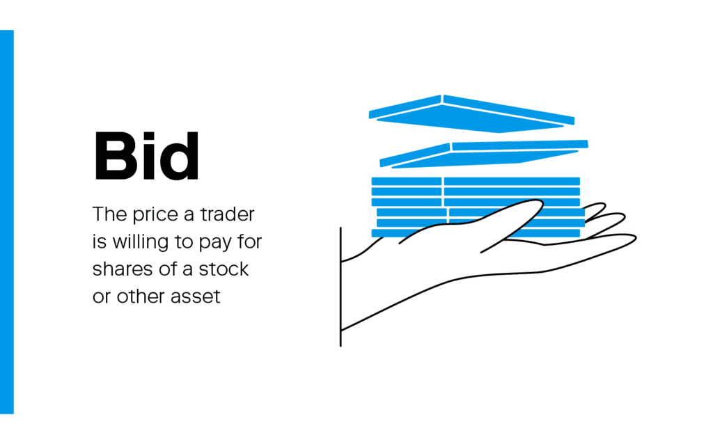 The price a trader is willing to pay for shares of a stock or other asset.