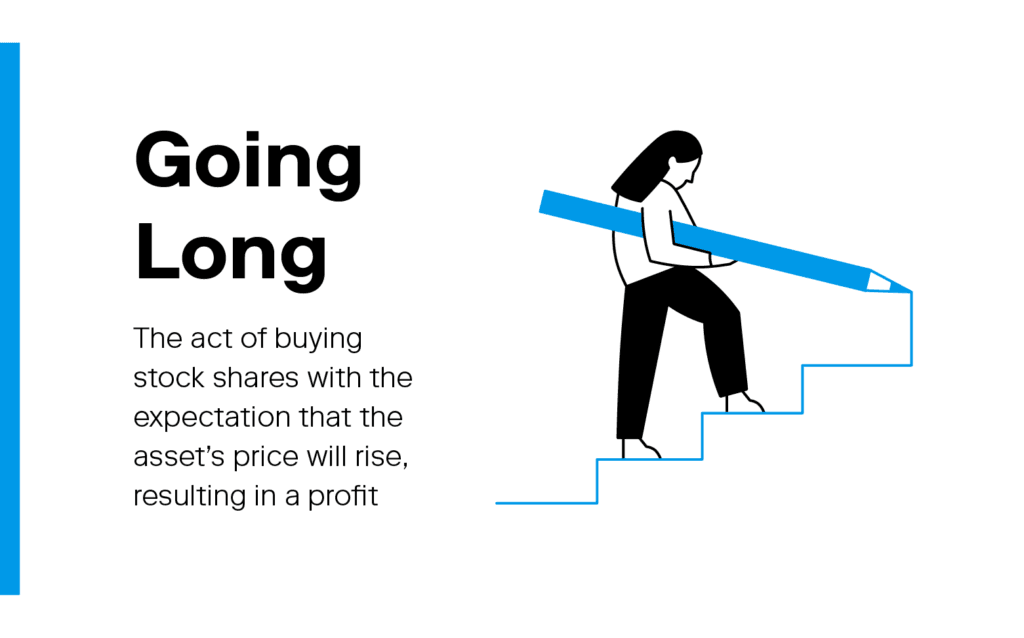 Going long refers to the act of buying stock shares with the expectation that the asset’s price will rise, resulting in a profit.