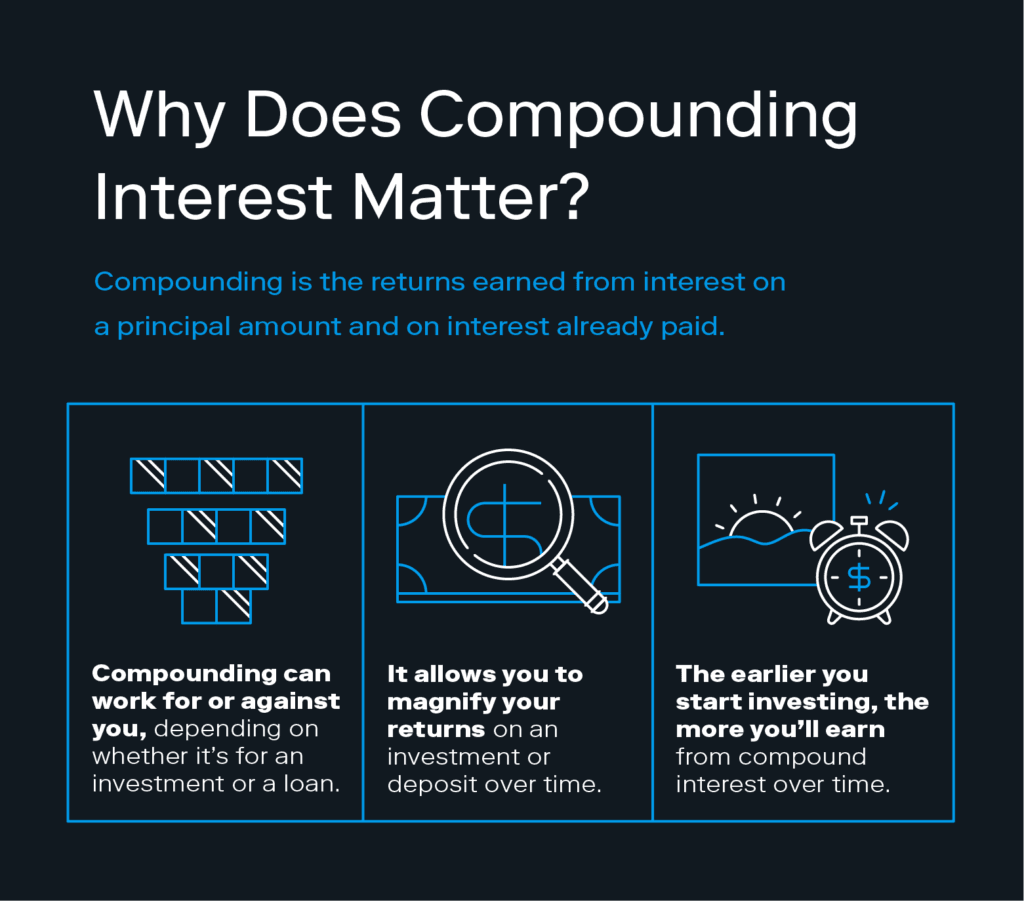 Timing is everything when it comes to compounding. The sooner you start earning compound interest, the more time your money has to grow. Even a small amount can add up to sizable returns thanks to the power of compounding.